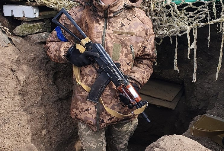 «Бойова собака» на передній лінії оборони викликала величезний резонанс (нею цікавилися й українські, і закордонні медіа), тому ми відшукали її власницю – військовослужбовицю одного з підрозділів бригади, солдата Наталку, котра зараз перебуває в зоні бойових дій.